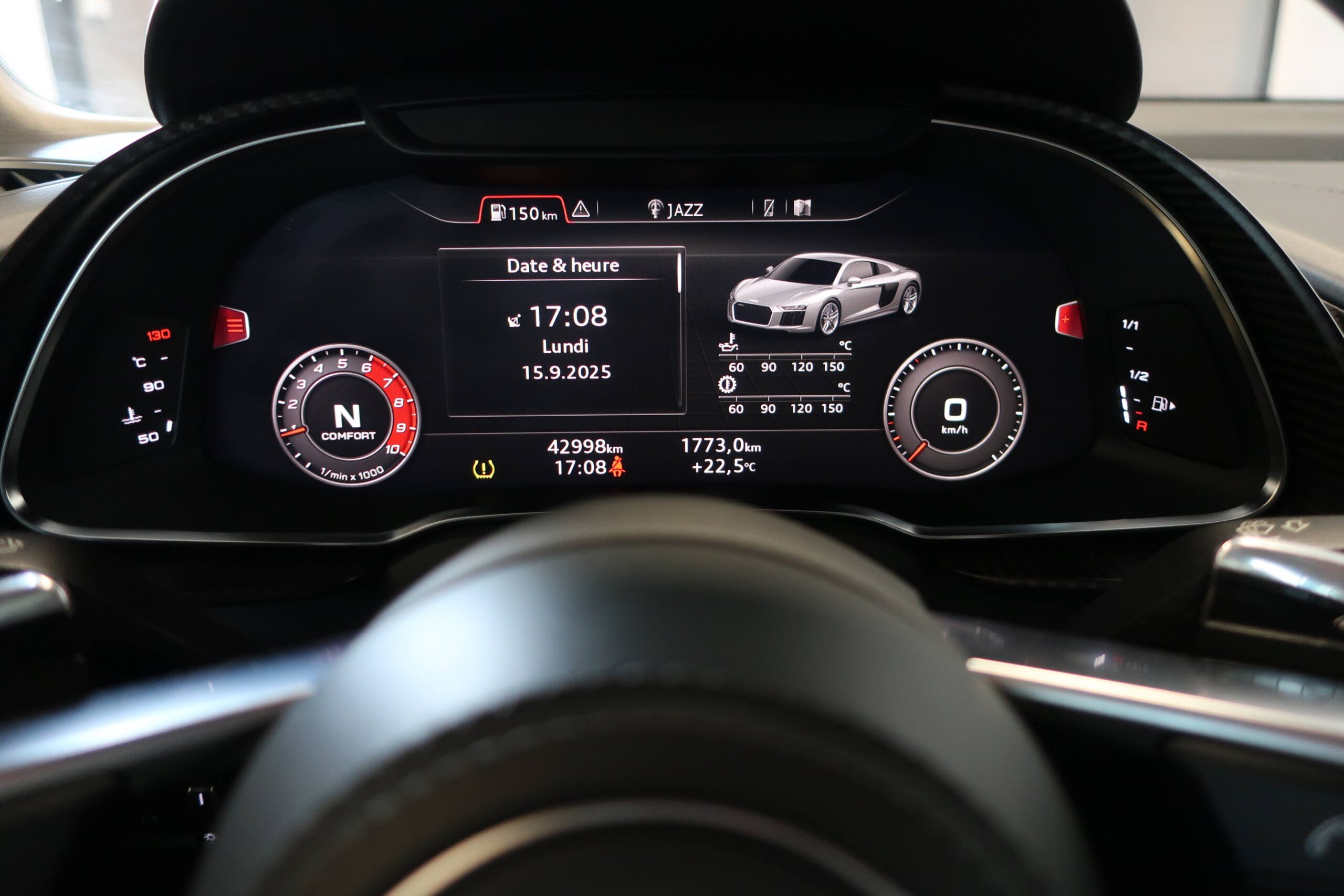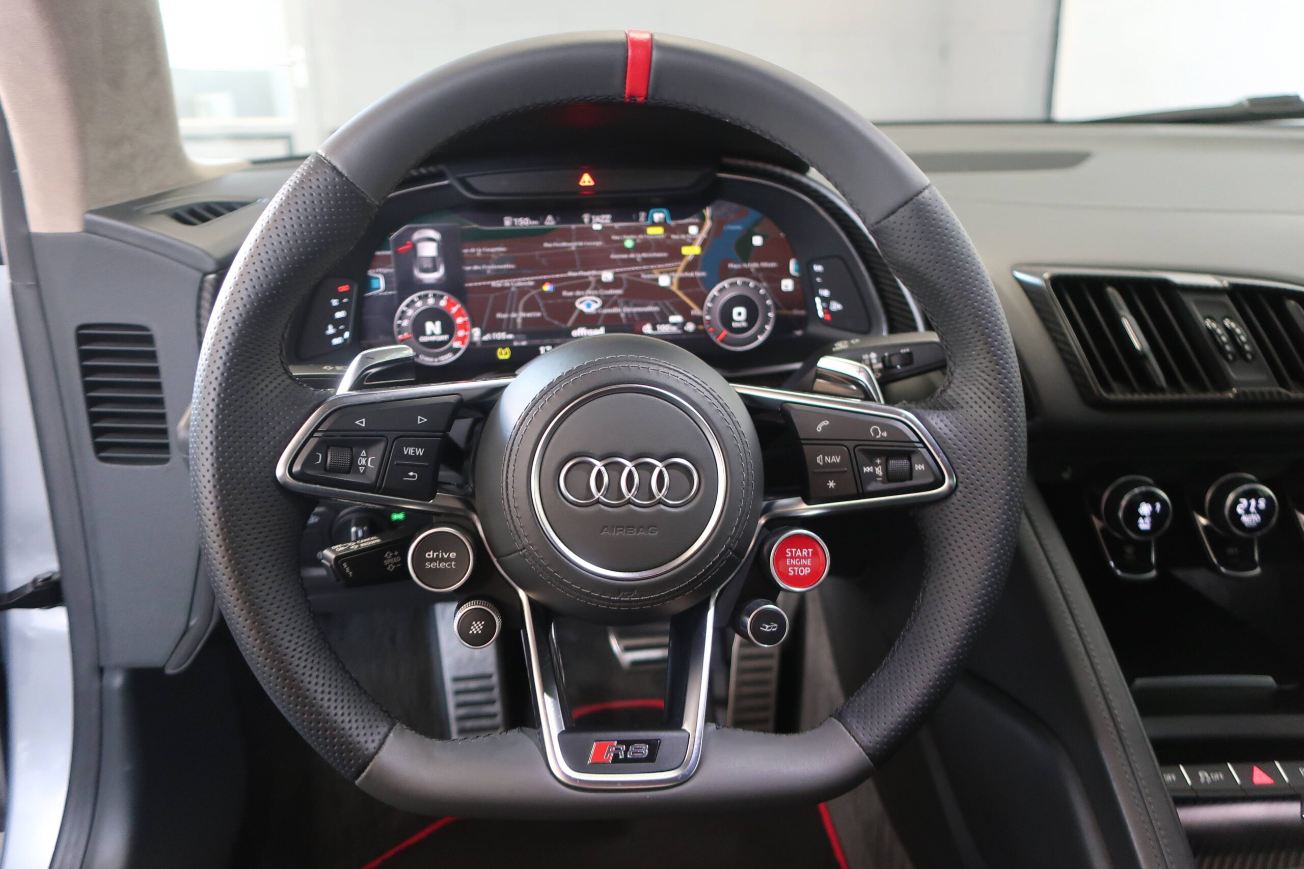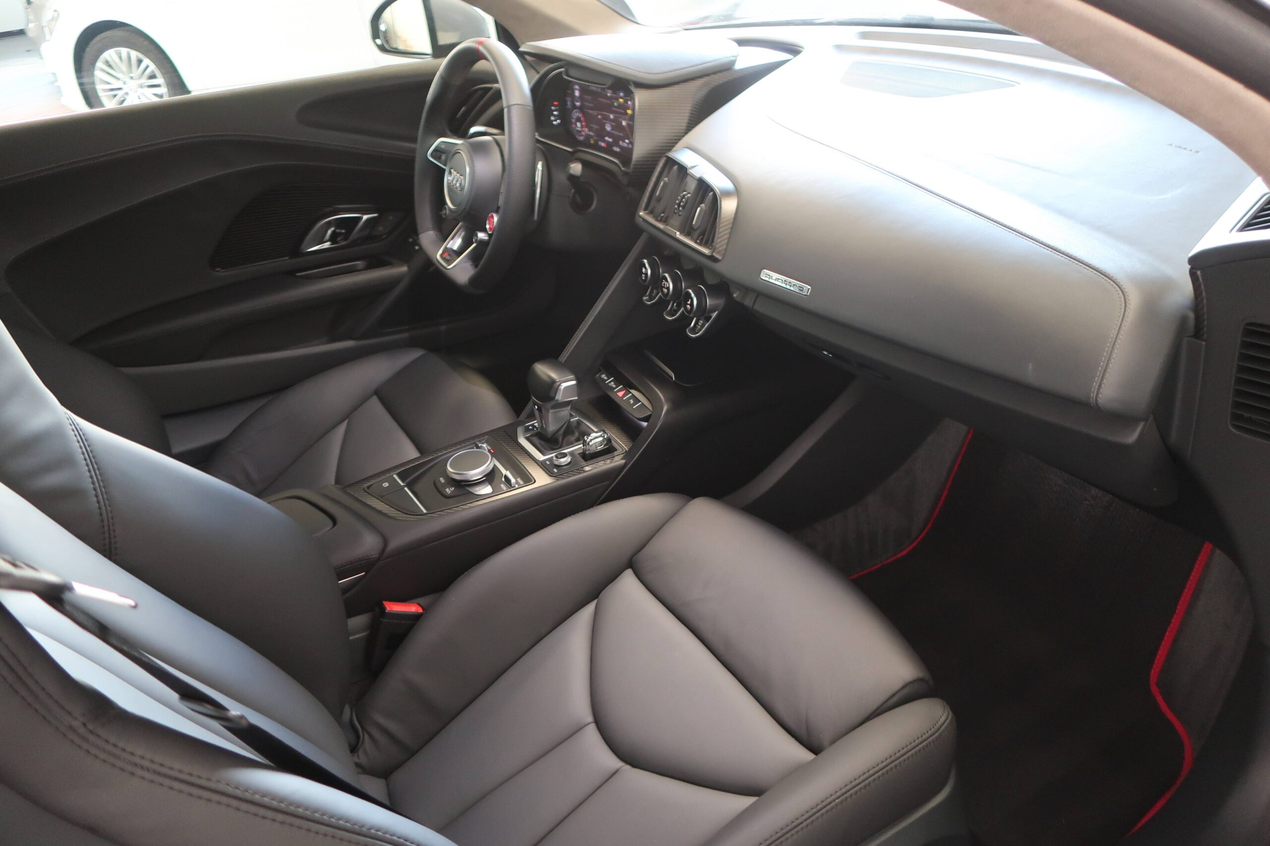 - EQUIPEMENTS => BORNE WI FI - COMMANDES VOCALES - DISQUE DUR MULTIMÉDIA - FONCTION MP3 - GPS CARTOGRAPHIQUE - KIT MAINS LIBRES BLUETOOTH - LECTEUR CARTE SD - LECTEUR CD - LECTEUR DVD - PRISE AUXILIAIRE DE CONNEXION AUDIO - PRISE USB - RADIO - RADIO NUMÉRIQUE DAB - SERVICES CONNECTÉS - SYSTÈME DE LOCALISATION PAR SATELLITE - SYSTÈME HI FI SURROUND - TMC - 13 HAUT PARLEURS - ARRÊT ET REDÉMARRAGE AUTO. DU MOTEUR - BLOCAGE ÉLECTRONIQUE DU DIFFÉRENTIEL - CAPTEUR DE LUMINOSITÉ - CAPTEUR DE PLUIE - CHASSIS SPORT - DÉMARRAGE SANS CLÉ - INDICATEUR DE LIMITATION DE VITESSE - LIMITEUR DE VITESSE - PALETTES CHANGEMENT VITESSES AU VOLANT - RÉGULATEUR DE VITESSE - SUSPENSION ADAPTATIVE - SYSTÈME D'ACCÈS SANS CLÉ - ECHAPPEMENT À DOUBLE SORTIE - FEUX ARRIÈRE À LED - JANTES ALU - PARE BRISE ACOUSTIQUE - RADAR DE STATIONNEMENT AR - RADAR DE STATIONNEMENT AV - RÉTROVISEURS DÉGIVRANTS - RÉTROVISEURS ÉLECTRIQUES - RÉTROVISEURS EXTÉRIEURS ÉLECTROCHROMES - RÉTROVISEURS RABATTABLES ÉLECTRIQUEMENT - APPUI TÊTE CONDUCTEUR RÉGLABLE HAUTEUR - APPUI TÊTE PASSAGER RÉGLABLE EN HAUTEUR - CLIM AUTOMATIQUE - COMPTE TOURS - ECLAIRAGE D'AMBIANCE - ECRAN MULTIFONCTION COULEUR - FILTRE À POLLEN - INSERTS DE PORTE CARBONE - INSERTS DE TABLEAU DE BORD CARBONE - LAMPE DE COFFRE - LAMPES DE LECTURE À L'AVANT - ORDINATEUR DE BORD - PARE BRISE THERMIQUE - PÉDALIER SPORT - RÉTROVISEUR INTÉRIEUR ÉLECTROCHROME - SIÈGE CONDUCTEUR À MÉMOIRE - SIÈGE CONDUCTEUR AVEC RÉGLABLE LOMBAIRE - SIÈGE CONDUCTEUR CHAUFFANT - SIÈGE CONDUCTEUR ÉLECTRIQUE - SIÈGE CONDUCTEUR RÉGLABLE EN HAUTEUR - SIÈGE PASSAGER À MÉMOIRE - SIÈGE PASSAGER À RÉGLAGES ÉLECTRIQUES - SIÈGE PASSAGER AVEC RÉGLAGE LOMBAIRE - SIÈGE PASSAGER CHAUFFANT - SIÈGE PASSAGER RÉGLABLE EN HAUTEUR - SIÈGES AVANT SPORT - VITRES TEINTÉES - VOLANT CUIR - VOLANT MULTIFONCTION - ABS - AIRBAG CONDUCTEUR - AIRBAG PASSAGER DÉCONNECTABLE - AIRBAGS LATÉRAUX AVANT - ALARME - ALARME VOLUMÉTRIQUE - ANTIDÉMARRAGE ÉLECTRONIQUE - ANTIPATINAGE - BAS - CONTRÔLE DE FREINAGE EN COURBE - CONTRÔLE DE TRACTION - CONTRÔLE ÉLECT. DE LA PRESSION DES PNEUS - EBD - ESP - RÉCEPTION RADIO NUMÉRIQUE : 590 € TTC - ASSISTANT DE FEUX DE ROUTE : ACTIVATION/DÉSACTIVATION AUTO DES FEUX DE ROUTE : 215 € TTC - AUDI MAGNETIC RIDE : 2 110 € TTC - ARGENT FLEURET : 0 € TTC - AUDI PARKING SYSTEM PLUS AVEC CAMÉRA DE RECUL : 730 € TTC - PHARES À LED AVEC ÉCLAIRAGE LASER AUDI : 3 960 € TTC - JA 20" COULÉ 10 BRCH EN Y TITANE MAT : 1 760 € TTC - PACK CUIR ÉTENDU : 3 610 € TTC - RÉGLAGE ÉLECTRIQUE DES DEUX SIÈGES AVANT ET RÉGLAGE PNEUMATIQUE APPUI LOMBAIRE